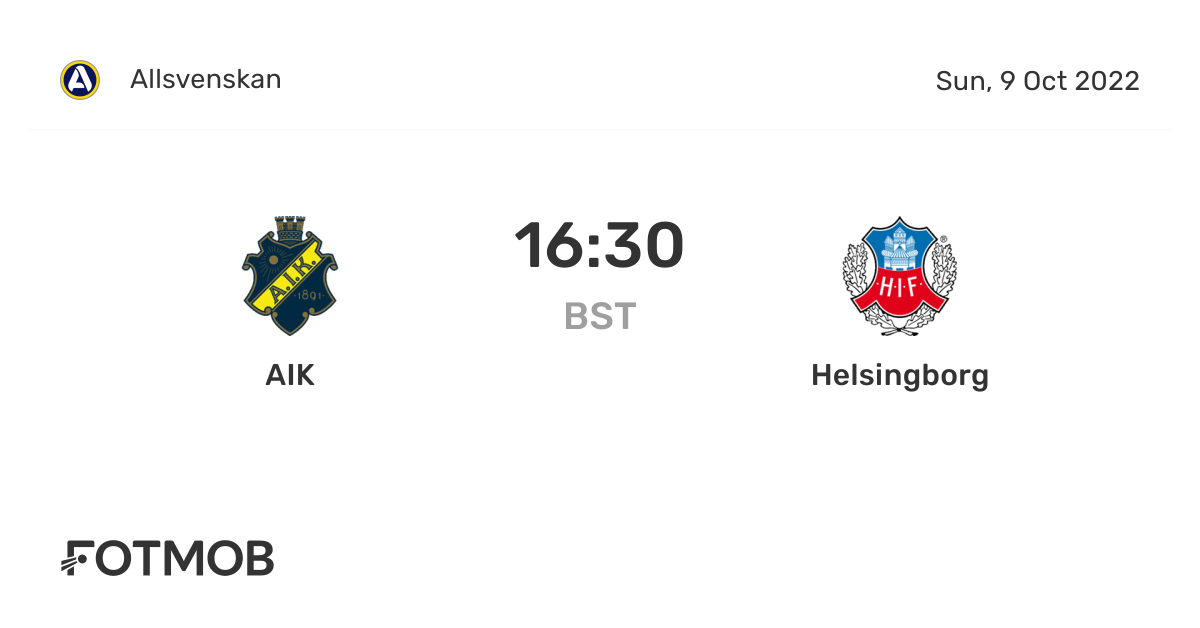 1630 09 Oct 2022. AIK vs Helsingborg Live Starting in. Compare odds across 24 UK bookmakers for AIK vs Helsingborg.